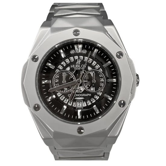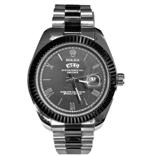 Luxury Silver Stainless Steel Day-Date Watch – Classic Executive Style